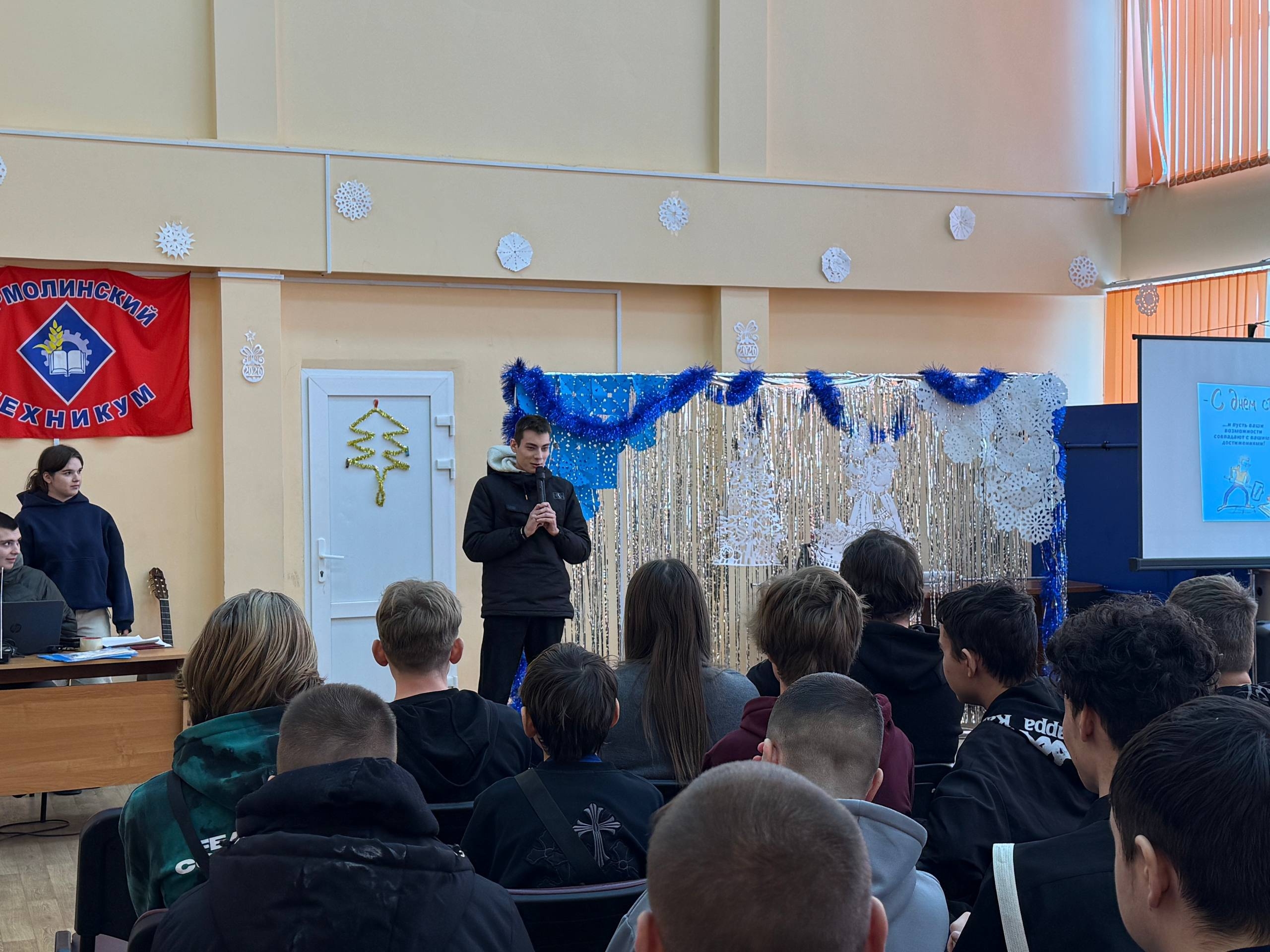 25 января, в Татьянин день, в Ермолинском техникуме состоялся традиционный праздничный концерт, посвящённый Дню студента. Этот день стал настоящим подарком для всего нашего дружного коллектива! Студенты подготовили зажигательную программу: звучали любимые песни под гитару и в современной аранжировке, зрителей покорили энергичные танцевальные номера, а юмористические сценки вызвали искренний смех и аплодисменты. Администрация техникума от всей души поздравляет всех учащихся с их праздником! Желаем неиссякаемой энергии, легкой сессии, ярких идей и верных друзей на этом замечательном пути!